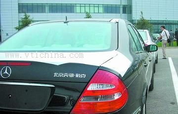 这是贴有中文标识的国产奔驰E级轿车。根据我国汽车产业政策的相关要求,经过中外合作反复的论证和研讨,国产奔驰中文标识的文字样式已经确定为“北京奔驰·戴克”,并已出现在日前生产的所有国产奔驰轿车的尾部。 |