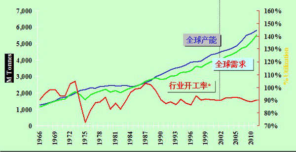 当前全球钛白粉涨价的速度简直可以用惊叹来形容,然而面对这样的“好形势”不免让人有一丝忧虑,以下我们将1966年以来全球钛白粉的行业开工率、全球需求和全球产能走势以图表形势展现给广大读者,以期共同分析和探讨钛白粉行业未来的走势。 全球钛白粉制造行业供求双方走势分析 |