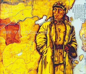 艾米·罗西埃所绘的《朱德总司令》,展现了朱德将军这位被西方人称作“红色拿破仑”的共产党军事领袖刚毅而平实的形象。他的身后是一幅巨大的中国地图。地图上用圆点标出了红色根据地瑞金——红军二万五千里长征的出发点,用箭头标明了红军长征的路线,还标明了抗日根据地。画的右上方用中文题词:“朱德总司令第八路红军领导拾万雄兵,在一九三四年一九三五年时期,经过七省地方中,国民军如钢铁包围,尤不畏惧,实为历史上著名。红军现与中国政府中央军联合救国,一致对外。”虽然题词为何人所书尚无从考证,但文字间却明显流露出对朱德总司令和红军的赞誉之情。与西方其他画家不同的是,艾米·罗西埃像中国画家一样,在画的右上方以中文题词。从中国汉代艺术中的“榜题”,到卷轴画的题跋,题画艺术被认为是最具中国特色的艺术形式之一。