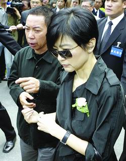 出现在父亲葬礼告别式上的林青霞明显瘦了一大圈 本报综合报道 6月3日,林青霞父亲林维良在台湾举殡,丧礼动用过百万新台币,林青霞要求低调处理,不发讣闻亦不收帛金。林青霞父亲当日上午在台北第二殡仪馆的景仰厅举行丧礼,林妈妈林麻兰英当年也是在这个地方出殡。林青霞特地选用白色香水百合、白桔梗、白色蝴蝶兰和白玫瑰布置灵堂。林青霞的好友陶敏明、施南生、徐克、杨凡等人都出席了告别仪式。 父亲过世半个月,林青霞暴瘦三四公斤,出现在父亲葬礼告别式上的她明显瘦了一大圈,脸颊凹陷,腰围只有23英寸。林青霞当天表现得很坚强,一直低头不语,而老公邢李就频频拭泪,直到仪式最后阶段,林青霞再也忍不住流下眼泪,步出火葬场时,她是挽着丈夫的手离开的。 当家人招待亲友到解秽宴时,林青霞已跟丈夫及同行的徐克、陶敏明等搭私人飞机回香港。一直有传夫妻二人近期感情生变,分开生活,但他们返港后,一行多人驱车到邢李近期的住所半山豪宅,直至昨天林青霞仍未回她的九龙塘新居。 |