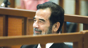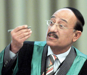 6月5日,巴格达,萨达姆庭审主法官拉赫曼(上)和一名辩方律师(中)在法庭上针锋相对。萨达姆(下)露出微笑 伊拉克前总统萨达姆·侯赛因的首席律师4日在接受路透社采访时指责说,审理萨达姆案件的伊拉克高等法庭对辩方律师和证人实施威逼胁迫。 萨达姆首席律师哈利勒·杜莱米说,他已经向伊高等法庭和美国官方提起控诉,指控他们在5月15日恢复庭审后“对辩方证人实施公然骚扰、虐待和殴打”。 杜莱米在约旦首都安曼告诉路透社记者说,审萨法庭和美国政府有一个“系统和有预谋的政策去恐吓辩方证人和律师”,以便阻止那些尚未出庭的辩方证人作证,“这是在破坏我们查明真相的努力”。他认为,如果法庭和美国方面不能保证不再使用胁迫方式,辩方就无法再找更多证人出庭作证,特别是当他们感到生命可能受到威胁的时候。 杜莱米指责说,伊拉克内政部人员于5月31日殴打并逮捕4名辩方证人,而美军部队明明看到辩方律师和证人被打,却视若无睹。他还说,辩方证人名单遭外泄,他们及其家属遭到恐吓和绑架。 出于“安全原因”,8名辩方证人已经从伊拉克前往安曼。他们在接受当地报纸采访时说,由于此前另外4名辩方证人遭到美军和伊拉克内政部拘禁,他们决定离开巴格达。 伊拉克高等法庭5日继续举行针对伊拉克前总统萨达姆的庭审。辩方在庭审开始时抗议法庭逮捕4名辩方证人的举动,但主审法官坚持这4人涉嫌“作伪证”。“他们(辩方证人)中的两个在法庭内遭到逮捕,而另外两个在绿区内被捕,”辩护律师团成员哈米斯·奥贝迪抗议说,“他们遭到伊拉克军队的殴打。主审法官宣布休庭至6月12日。 |